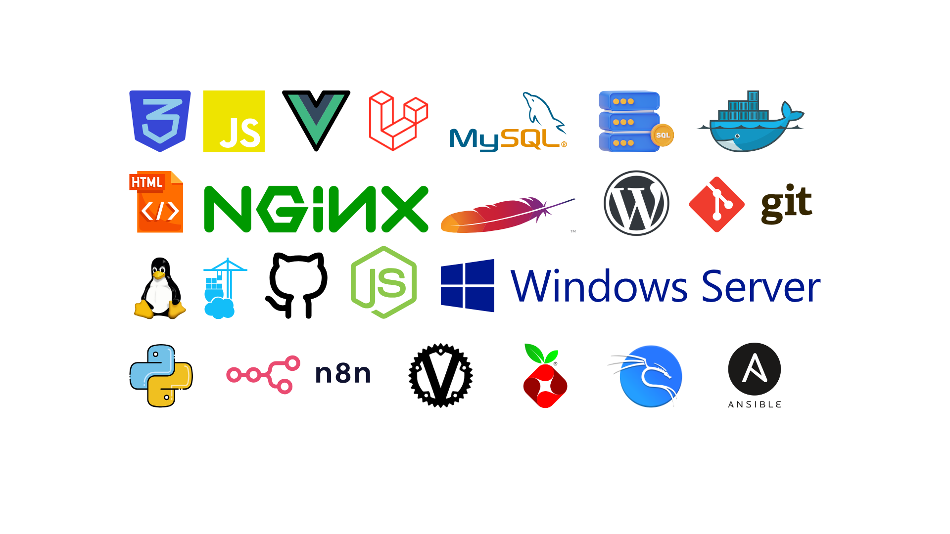 An overview of technologies I’ve worked with, demonstrating practical experience across infrastructure, networking, security, and development.